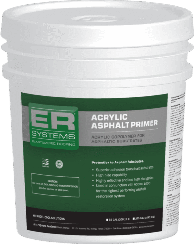 ERSystems® Acrylic Asphalt Primer is a single component, water-based synthetic polymer elastomeric coating. It provides protection to asphalt substrates and may be applied over fresh asphalt emulsion as a base coat.
