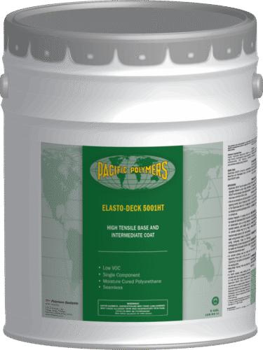 Pacific Polymers® Elasto-Deck 5001 H.T. is a high tensile, liquid-applied, single component, moisture-cured, VOC compliant, aromatic polyurethane waterproofing membrane. It can be used on parking decks where a skid-resistant, long lasting, wear resistant surface is required.